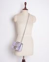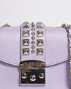 Add a touch of edgy sophistication to your look with this preloved Valentino By Mario Valentino Paulette Studded Leather Crossbody Bag in a charming lilac hue. Crafted from genuine leather, this stylish bag features a front flap adorned with striking silver-tone studs and a secure turn-lock closure. The chain-link strap allows for versatile wear as a crossbody or on the shoulder. Perfect for adding a pop of color and a touch of rock-chic to your everyday or evening attire.