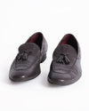 Valentino Men's Leather Tassel Loafers. These elegant slip-on shoes are crafted from soft, finely textured brown leather, featuring a comfortable moccasin silhouette. The design is subtly enhanced by a classic leather tassel detail on the vamp, providing a touch of traditional, sophisticated flair.