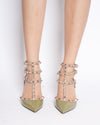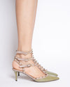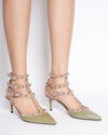 The Valentino Rockstud Pumps in Sage Green blend iconic design with understated elegance. Expertly crafted in Italy from smooth leather, these pumps feature the brand's signature pyramid stud detailing for a bold, luxurious touch. The soft sage green tone offers a fresh, versatile alternative to neutrals, making them perfect for both formal and semi-casual occasions. With a pointed toe and sleek profile, these pumps are finished with leather lining and a sturdy heel, delivering comfort without compromising on style.