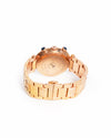 Versace Destiny Spirit Watch is rendered in premium rose gold-plated stainless steel. The design is defined by its transparent outer ring, which houses small, loose rose gold-toned spheres that float and glide freely around the dial as you move, creating a dynamic sense of motion. A standout feature is the boldly engraved Versace lettering across the bezel, paired with the iconic Greca key pattern meticulously embossed on the metal link bracelet. Finished with a sophisticated black sunray dial featuring rose gold-tone hands.