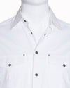 Versace Full Sleeves Button Down White Shirt is a crisp and stylish piece that offers a modern take on classic shirting. Crafted from a smooth white cotton fabric, the shirt features a sleek, tailored silhouette with a pointed collar. The design is subtly detailed with dual chest pockets, each secured with a black button and accented with small metallic studs above the pockets, giving the shirt a refined, modern utility look.