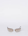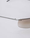 Hugo Boss sunglasses are a classic and elegant accessory. The frames are a sleek, minimalist silver-tone metal with a flattering rectangular silhouette. The lenses have a warm brown gradient tint, offering both style and sun protection.