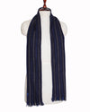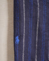 Polo Ralph Lauren Scarf features a unique reversible double-face design, providing two distinct looks in one high-quality accessory. One side showcases a timeless navy blue and white polka dot pattern, while the reverse features a classic horizontal striped motif in shades of blue and tan. Expertly crafted from a soft, lightweight knit, the scarf is finished with delicate frayed edges for a relaxed yet refined aesthetic.