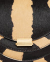 The Wandler Crossbody Bag in neutral ponyhair features a striking striped design complemented by gold-tone hardware for a sophisticated look. It includes a flat handle and a single adjustable shoulder strap for versatile carrying options, along with leather trim embellishments and a single exterior pocket. Inside, the bag is lined with leather and offers a single interior pocket for organized storage, secured by a stylish buckle closure at the fron perfectly blending fashion and function.
